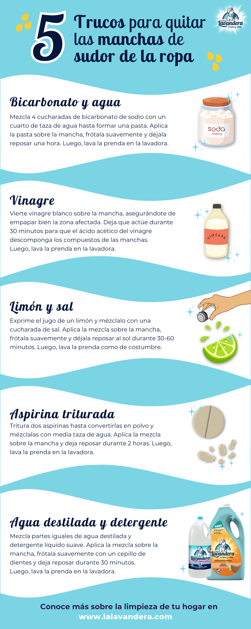 Funcionan en la mayoría de los tejidos, pero siempre es mejor verificar las instrucciones de cuidado del fabricante antes de aplicar cualquier método. - ¿Con qué frecuencia debo tratar las manchas de sudor?