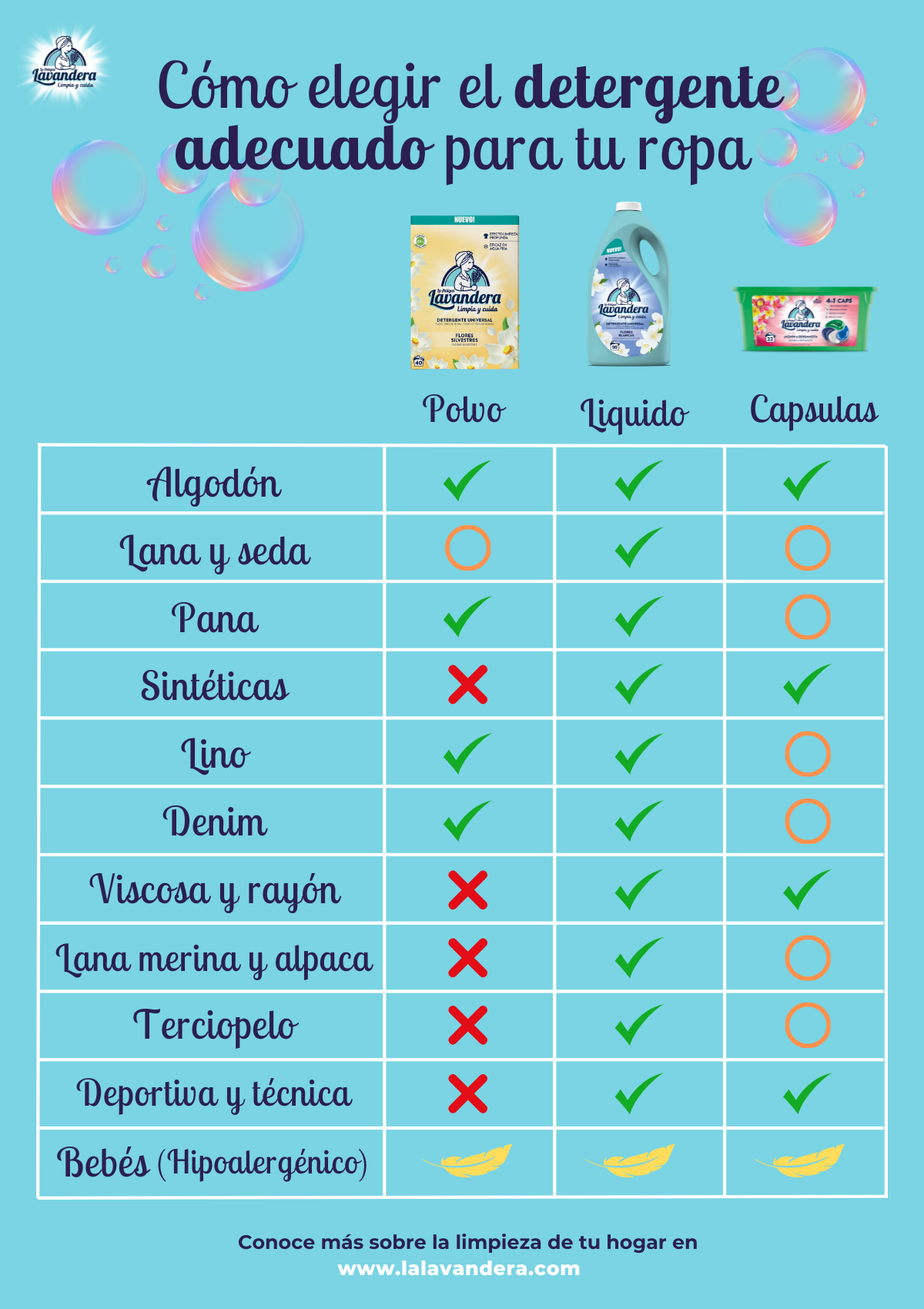 Aquí te presentamos los diferentes tipos de detergente disponibles, explicando sus usos y cuáles son ideales para cada tipo de prenda: